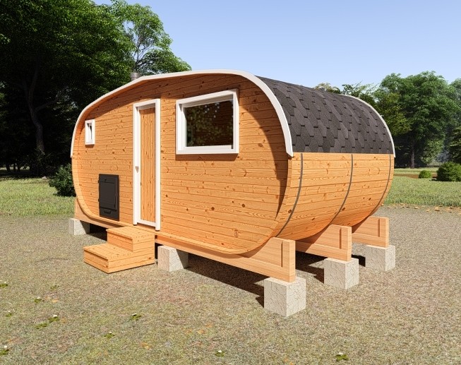 Баня-бочка овальная из кедра 4х2,2 метра Овальная баня-бочка из кедра просторная и вместительная. Имеет два отделения: раздевалку, которую можно использовать как комнату отдыха, и парилку. Для удобства пользования раздевалка оснащена лавочкой, полкой и вешалкой из кедра. В парильном отделении располагается печь и двухуровневый открытый полок. Для установки такой модели не требуется полноценный фундамент, поэтому при необходимости ее можно перенести на другое место. Так же баню-бочку можно укомплектовать верандой со скамейками, козырьком и печью с внешней загрузкой, благодаря которой весь мусор после топки останется на улице. Древесина кедра насыщена эфирными маслами и фитонцидами, которые активируются при воздействии температур. Таким образом, парение в каркаско-щитовых банях из кедра вдвойне полезно.