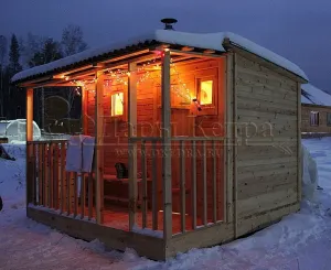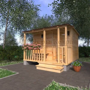 Каркасно-щитовая баня из кедра «Мини» с верандой