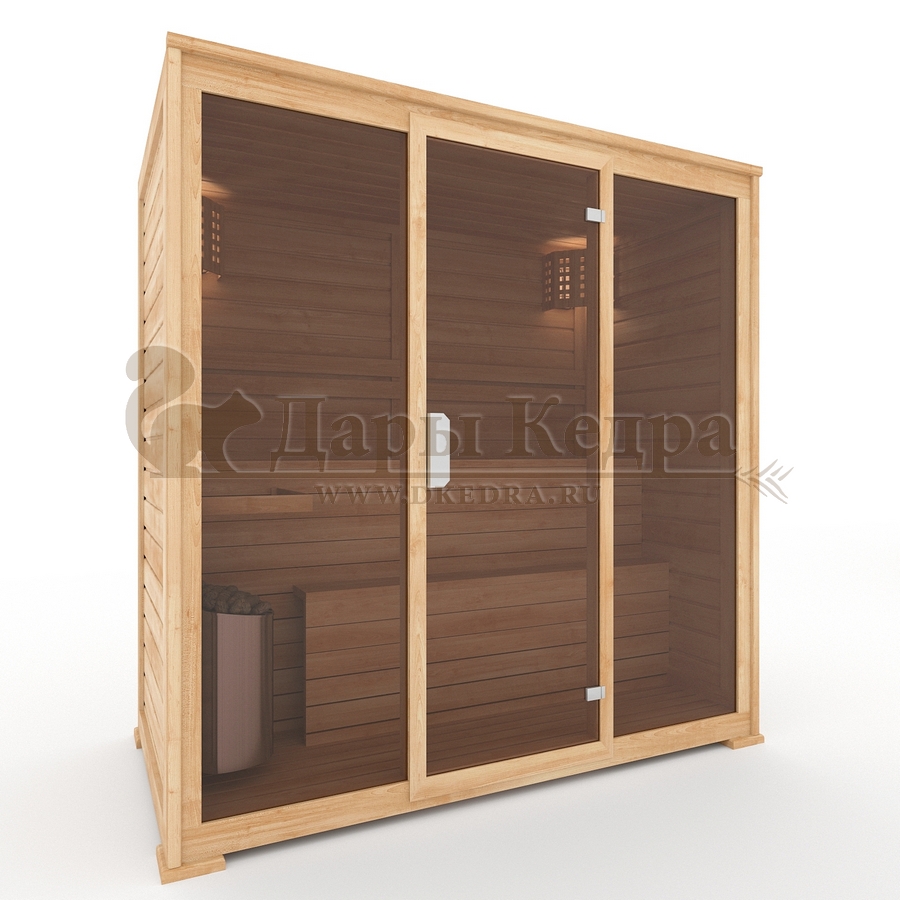 Трехместная финская сауна кабина из кедра с электрокаменкой